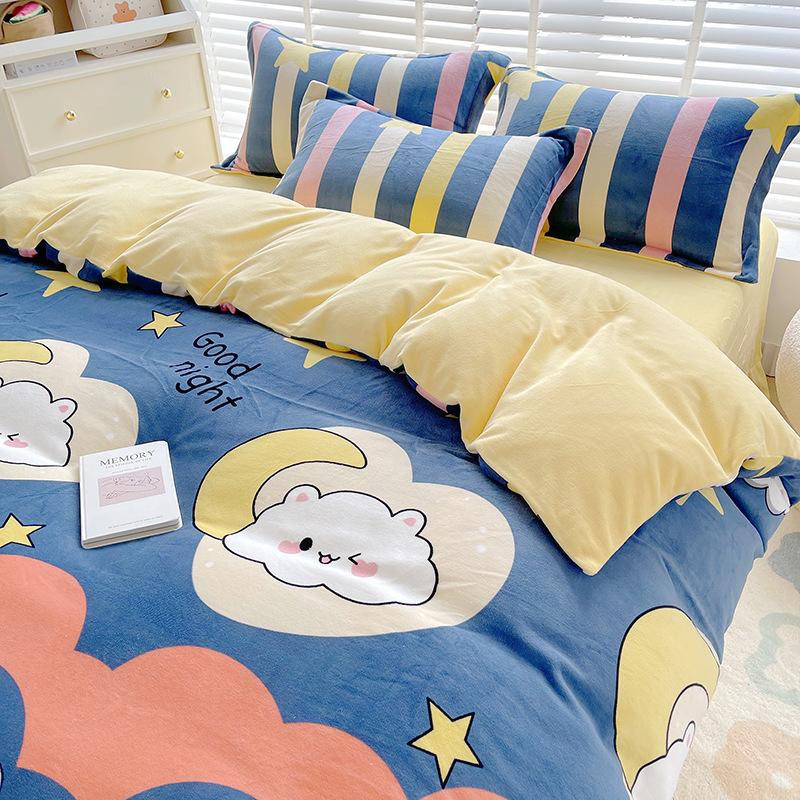 Комплект простыней из молочного бархата, четыре части, утолщенная зимняя фланелевая простыня, пододеяльник, двухсторонние бархатные простыни, одеяла, постельное белье Flat Bed Sheet&2.0m bed