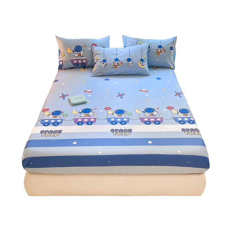Комплект простыней на резинке с принтом астронавта из мультфильма и эластичной лентой, мягкий хлопковый чехол для матраса, противоскользящие покрывала, комплект постельного белья из 3 предметов 90x200x25cm 3Pcs