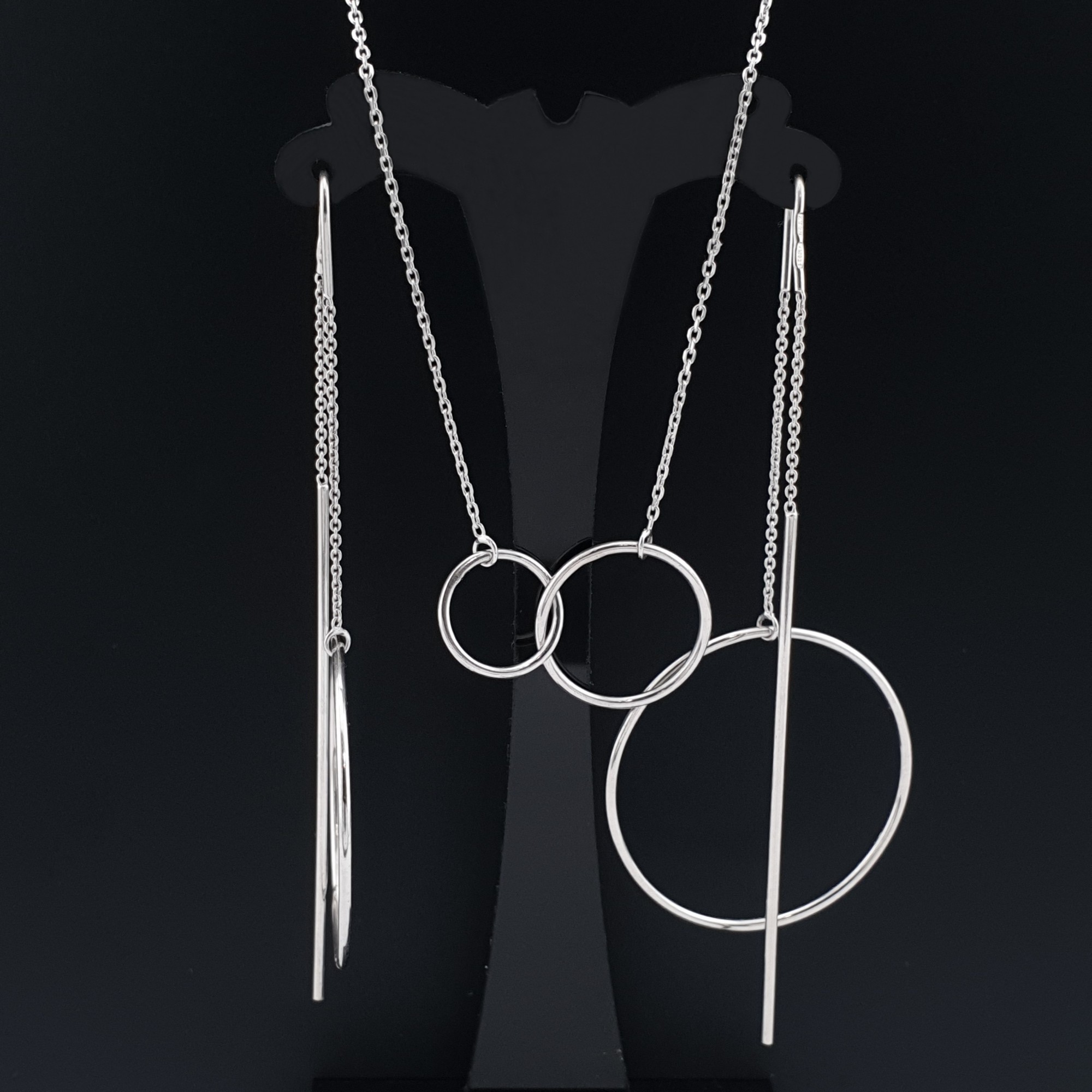 Комплект родированное серебряное колье и серьги Харьков Цепь Геометрия - женская цепочка и сережки протяжки 1222-р+517-р