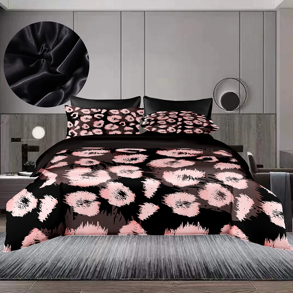 Комплект розового пододеяльника с леопардовым рисунком 228X228, простой комплект постельного белья, черное стеганое одеяло с наволочкой, прос...