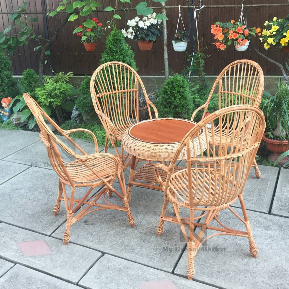 Комплект садовой мебели стол и четыри кресла лозы Лоза Карпат - садовая мебель уличная из лози для сада для дачи беседки улицы стол + кресла, террасная элитная садовая плетеная мебель для дачи