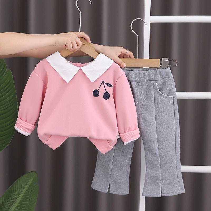 Комплект толстовки и брюк с лацканами «Вишня» для девочек - Коллекция весна/осень 80 cm розовый