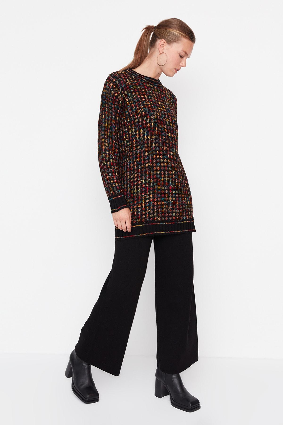 Комплект трикотажа из свитера и брюк с вязаным узором черного цвета TCTAW23US00114