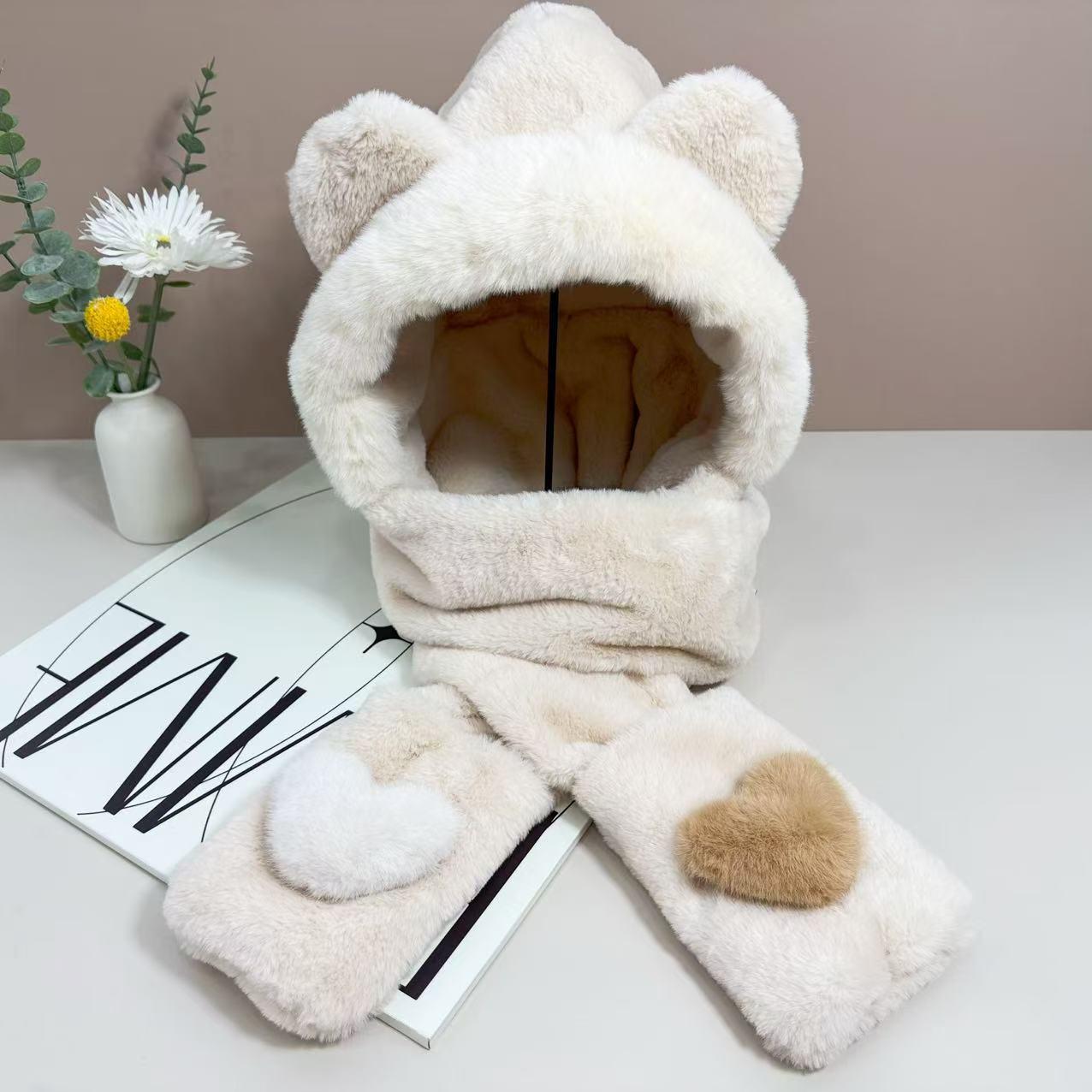 Комплект шапка, шарф и перчатки высокого класса для зимы - Теплый, милый и защищающий от холода
