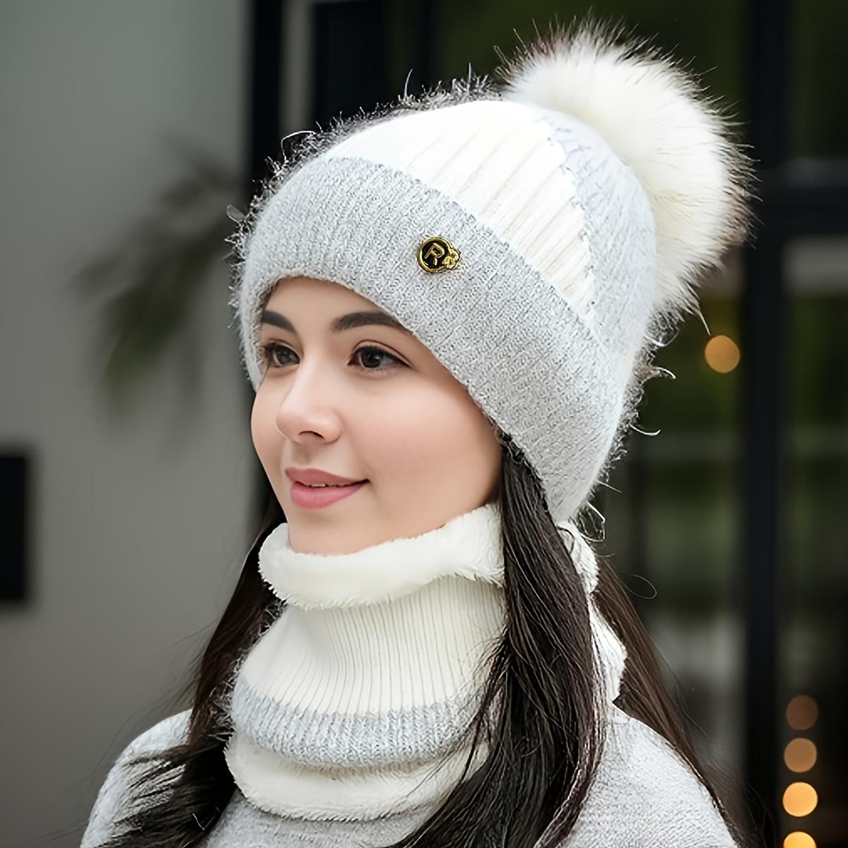 Комплект шапка и шарф 2025 для женщин, теплая флисовая шапка на осень-зиму, модная зимняя ветрозащитная и холодостойкая шапка для велоспорта белый