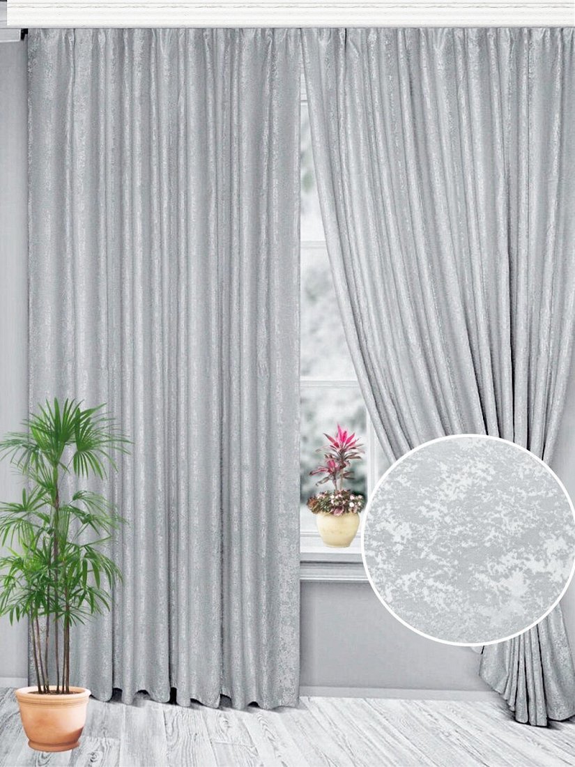 Комплект штор ИП Романович Е.Ю. Мрамор на ленте 1.5x2.5 м (серебристый, 2 шт)