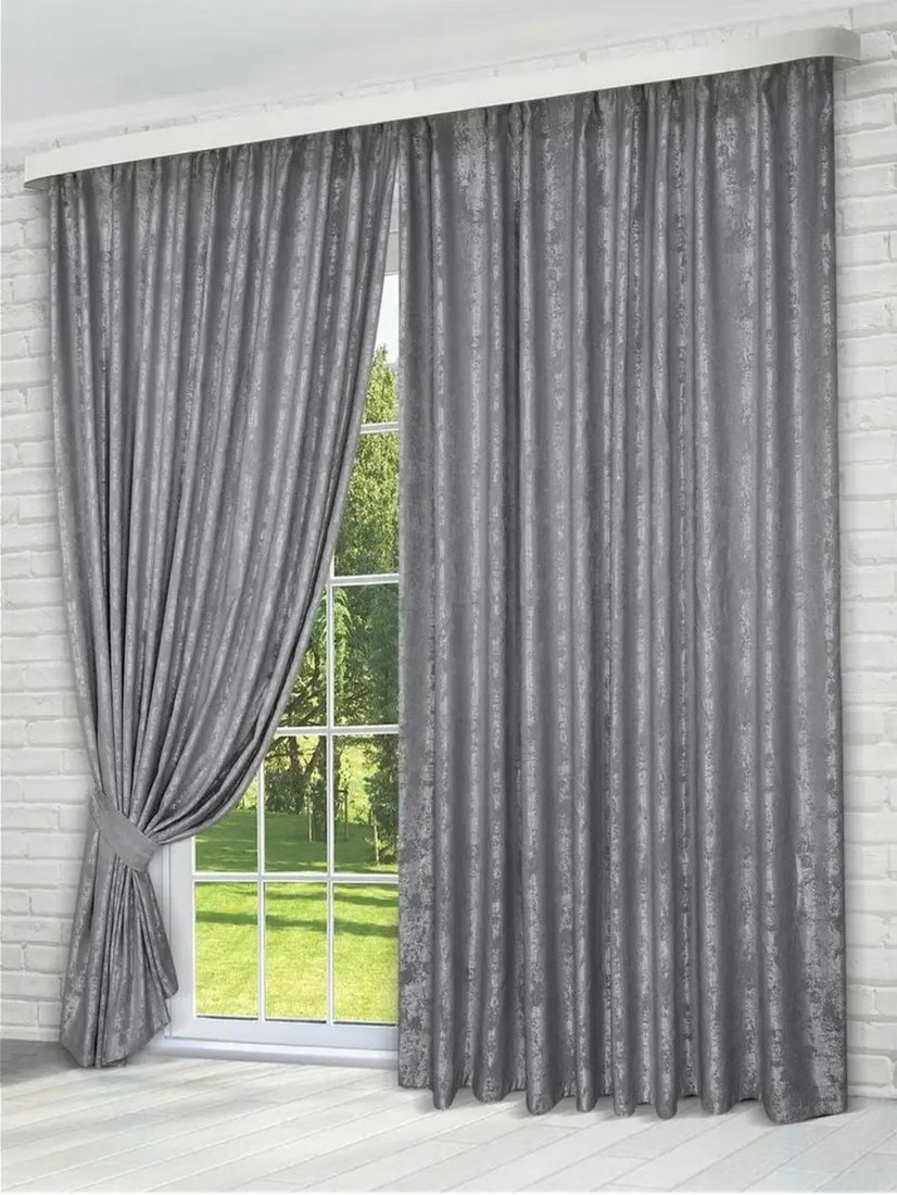 Комплект штор ИП Романович Е.Ю. Мрамор на ленте 2x2.7 м (темно-серый, 2 шт)