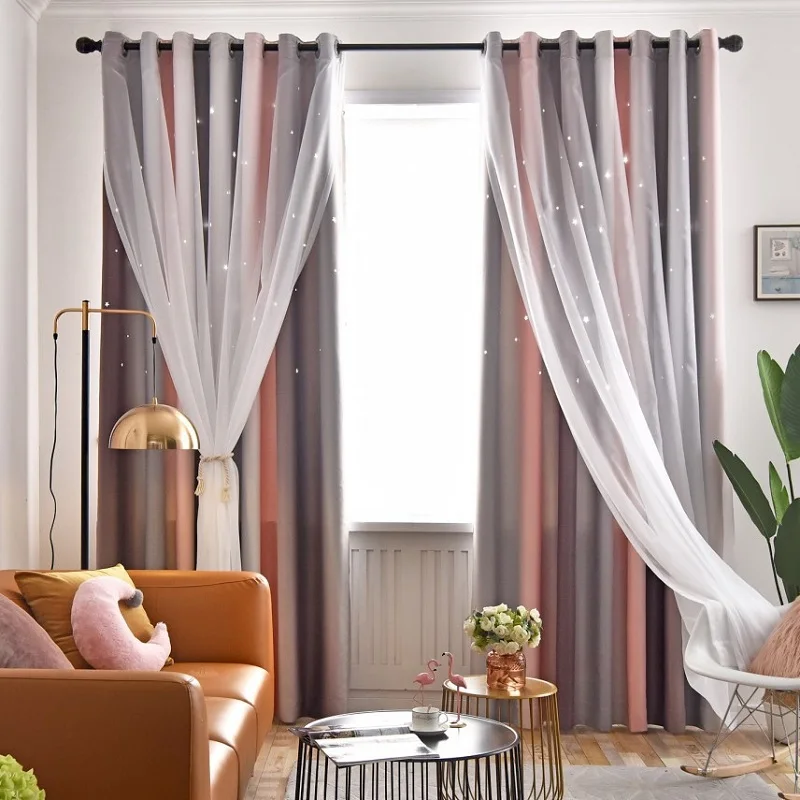 Korean Double Layer Striped Hollow Stars Curtains For Living Room Girls Children Bedroom Blackout Window Curtain Customized