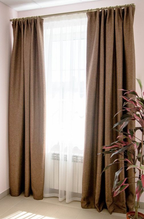 175 х 260 см, рогожка, для жилой комнаты, коричневый, крепление тесьма, ночные