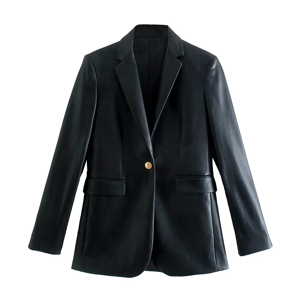 DYLQFS 2021 женский элегантный пиджак из искусственной кожи, Черный Уличный костюм, женский модный винтажный офисный пиджак на одной пуговице, п...