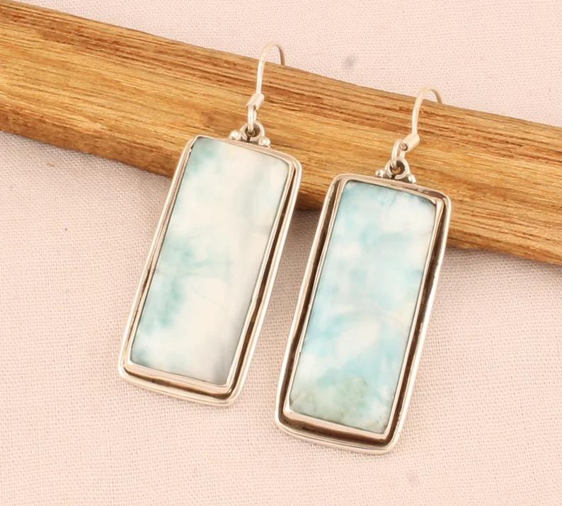 Комплект ювелирных изделий Ларимар, Ювелирные изделия из серебра 925 пробы, Ювелирные изделия ожерелья, Прямоугольные украшения, Ювелирные изделия ручной работы, Подарок для нее Only Earring