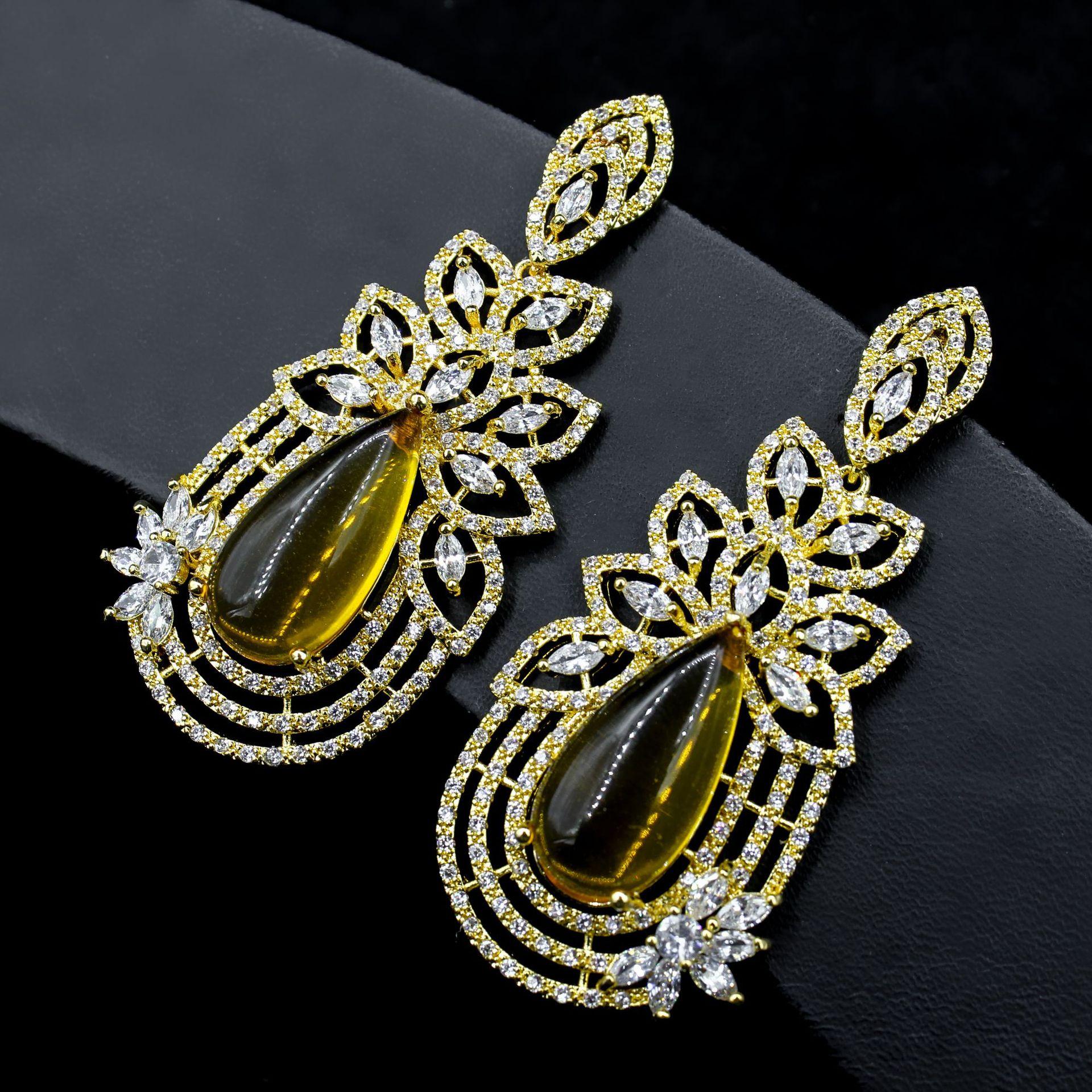 Комплект ювелирных изделий Свадебный атмосферный цветок вермикулит женские длинные серьги розовое золото золотые серьги