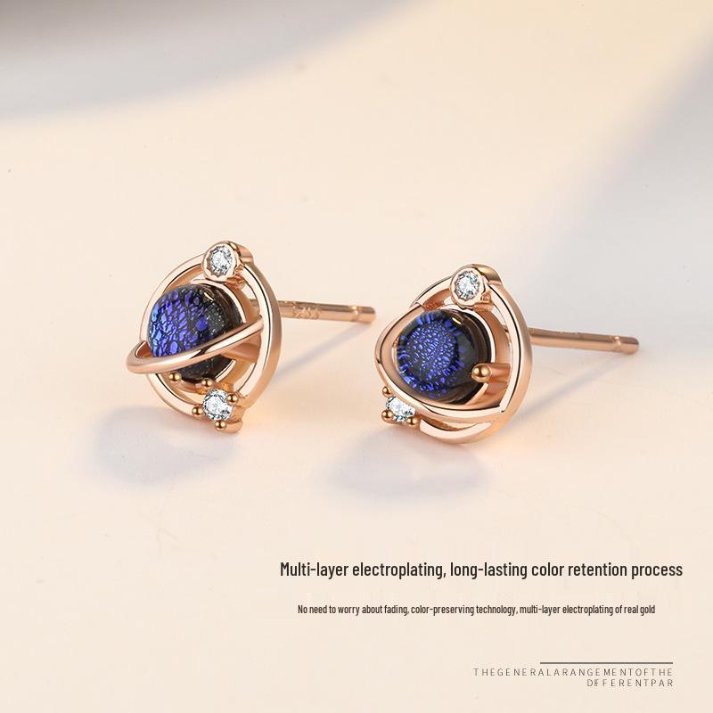 Комплект ювелирных изделий из серебра 925 пробы и муранского стекла «Мечтательная планета»: Ожерелье, Кольцо, Браслет, Серьги-пусеты - Идеальный подарок на День святого Валентина 925 Silver
