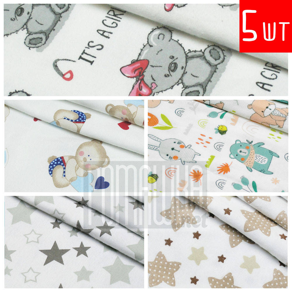 Комплект 5 шт 110*90 см детская теплая фланелевая пелёнка фланель байковая байка для пеленания роддом 3266 РЦ4, Голубой
