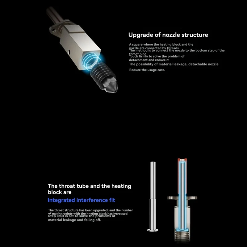 Комплект Hotend для 3D-принтера GW-For Bambu Lab P1 с охлаждающим вентилятором, соплами из закаленной стали, улучшенная точность печати 0,8 мм