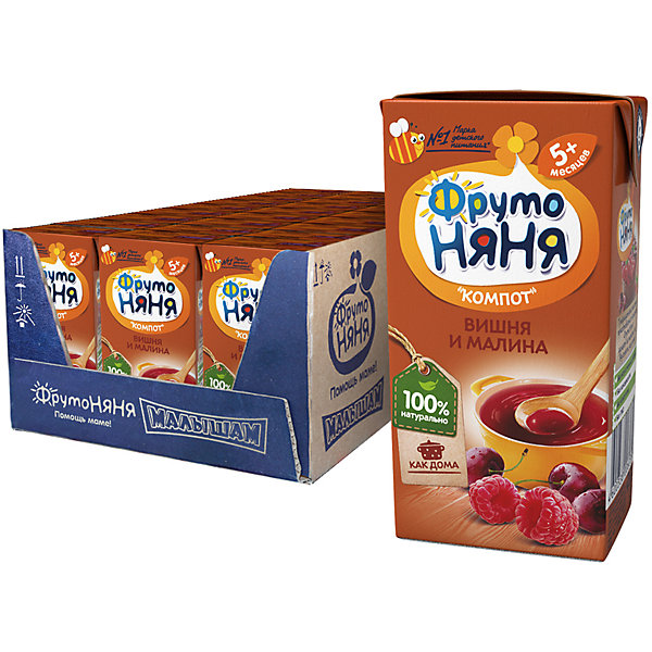 Компот ФрутоНяНя вишня и малина, с 5 мес, 18 шт по 200 г