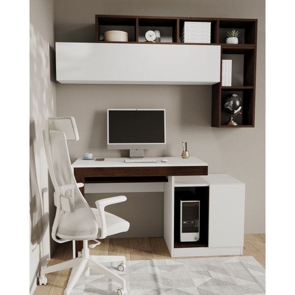 Компьютерный стол с ящиком и полкой Woodville Модена комплектация 3 белый/венге (ЛДСП) 563546 (прямоугольная столешница), 563546