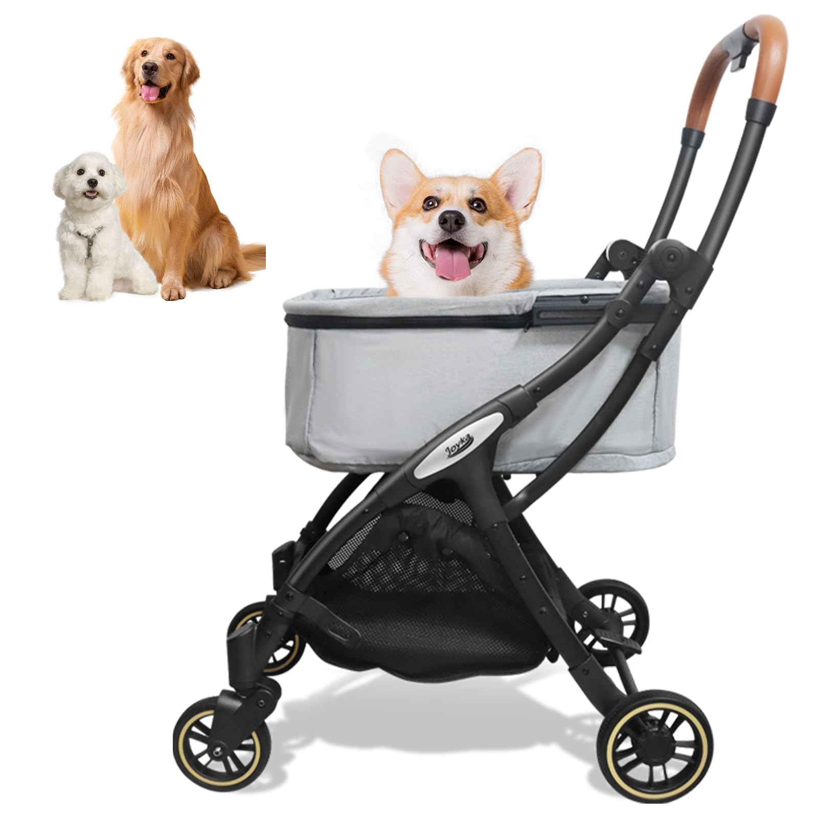 Комфортная коляска для щенков, большое пространство и простота хранения с одним лучшим партнером для прогулок с собаками и 4-колесной коляской, котятами, серый