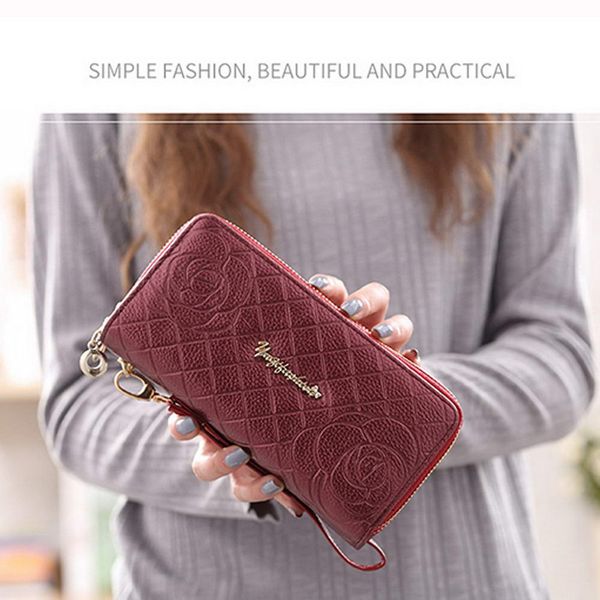 women's wallet double zipper phone bag long coin purse bag phone case student girls new, Red;black