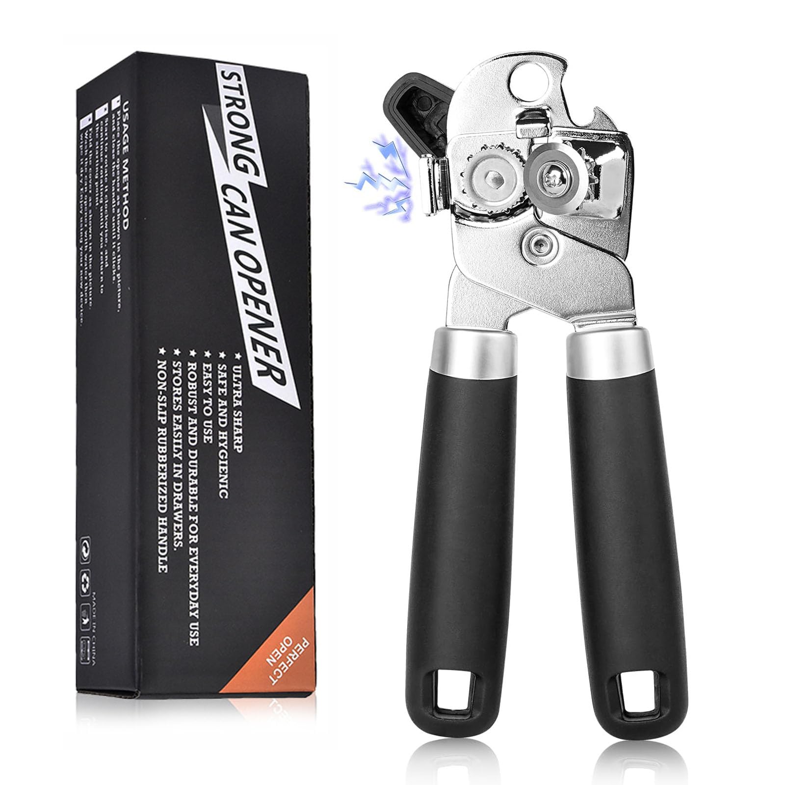 Консервный нож из нержавеющей стали, ручной консервный нож с ручкой, консервный нож, идеальный кухонный инструмент 3 в 1, нескользящий (черный)