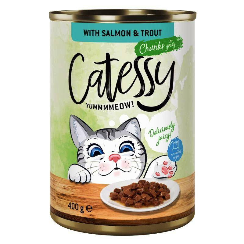 Корм Catessy содержит все ингредиенты важные для здоровой жизни кошки, и имеет исключительно приятный вкус. Вкусное мясо или ароматная рыба в соусе или желе обязательно понравятся вашему питомца.Корм помещен в консервные банки что упрощает разделение на несколько приемов пищи или между несколькими кошками.Catessy кусочки в желе или соусе производятся без сахара и вкусовых добавок в Германии.