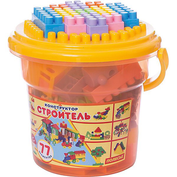 Конструктор Полесье «Строитель», в желтом ведре «Макси» с крышкой, 77 деталей можно купить в нашем интернет-магазине.