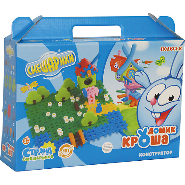 Конструктор "Смешарики" от производителя "Полесье" включает в себя 131 деталь, правильно сложив которые, ребенок получит чудесный домик Кроша.