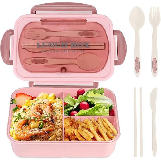 Контейнер для бенто для взрослых, 1200 мл, контейнеры для ланча для взрослых, герметичный ланч-бокс с приборами, не содержит БФА, бенто-бокс с 3 отделениями, можно использовать в микроволновой печи розовый