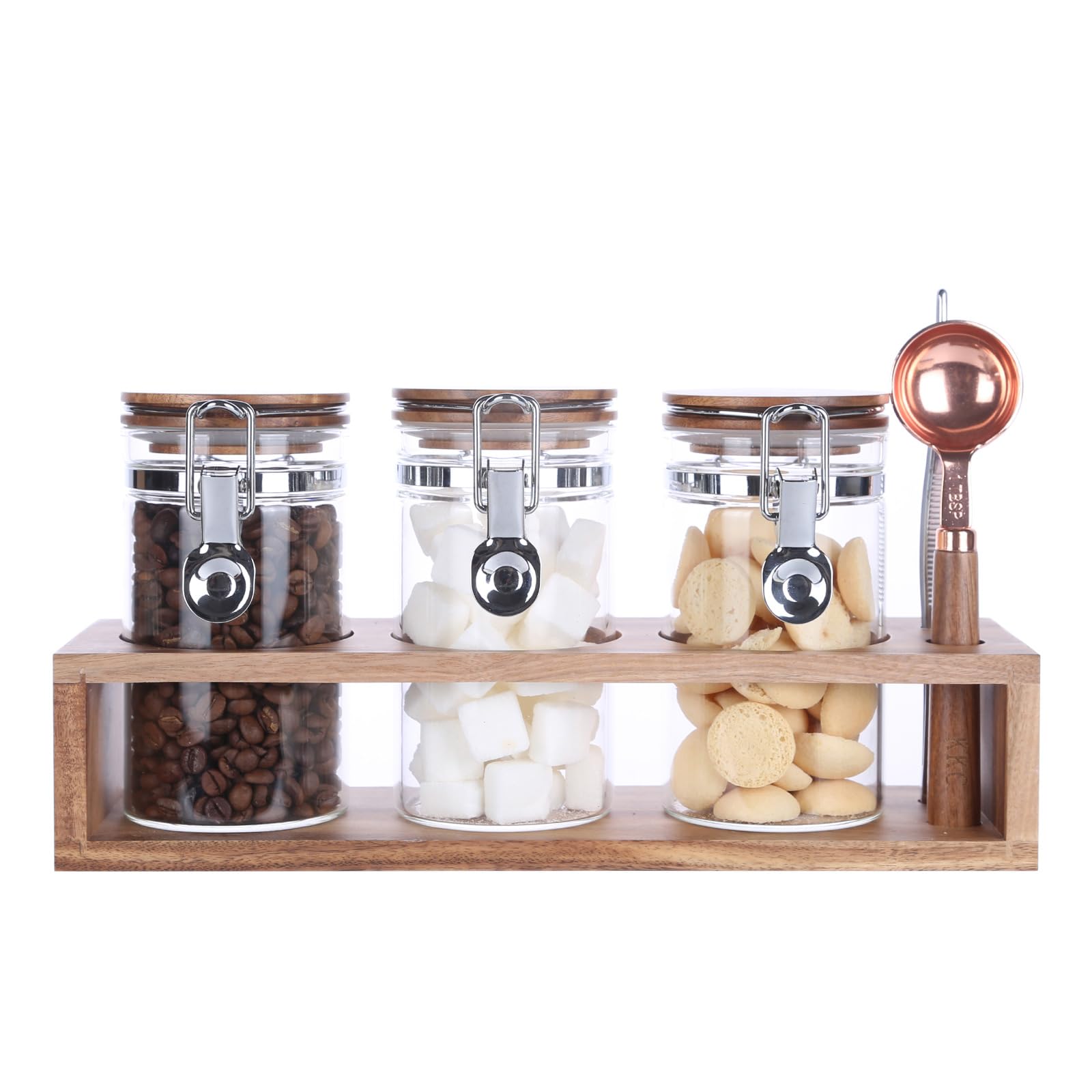 Контейнер для хранения кофейных зерен KKC, герметичная канистра, сахар, соль, мука, дрожжи, стеклянная канистра для кофе с мерной ложкой, набор из 1200 мл