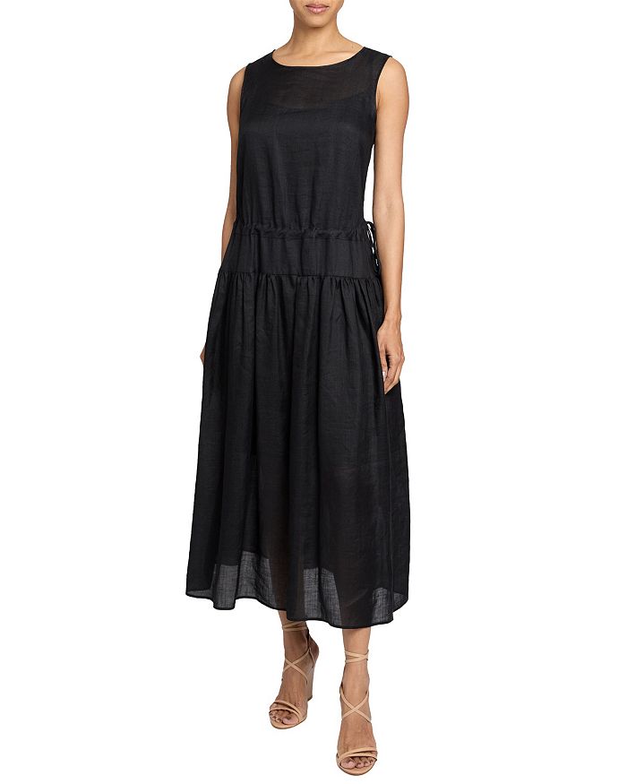 МИСТИ Миди-платье без рукавов с пышной юбкой и съемной нижней юбкой, боковыми карманами из легкого рами Santorelli, черный