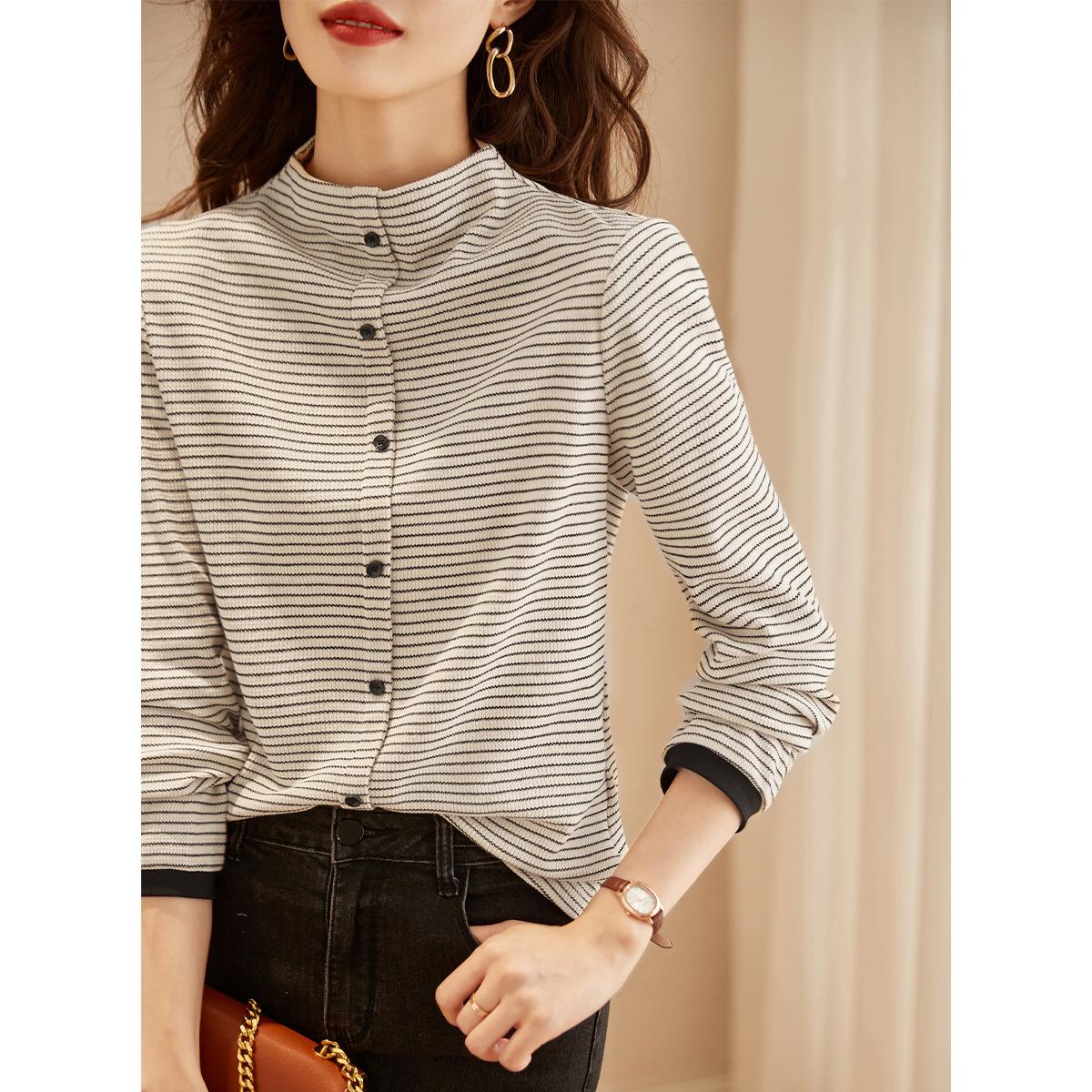 Контрастная полосатая полуводолазка, верхняя часть рубашки, женская зимняя новая модель, универсальная теплая футболка с длинным рукавом 2XL