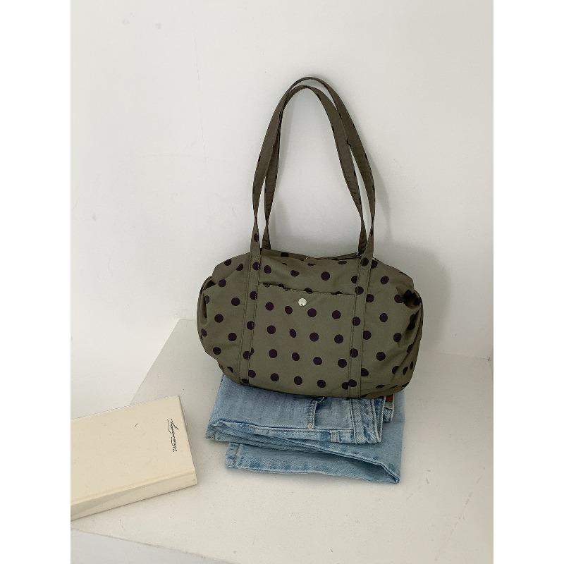 Контрастная сумка в горошек, большая вместимость, на плечо, новая повседневная универсальная нейлоновая сумка
