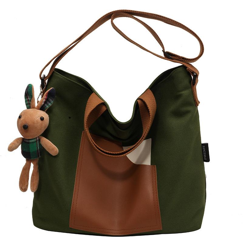 Контрастная холщовая сумка Портативная большая сумка Повседневная сумка через плечо зелёный