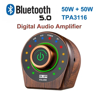 50W+50W Bluetooth 5.0 TPA3116 Class D Digital Power Audio Amplifier Wooden Retro Stereo HiFi Amplificador Home Theater AMP