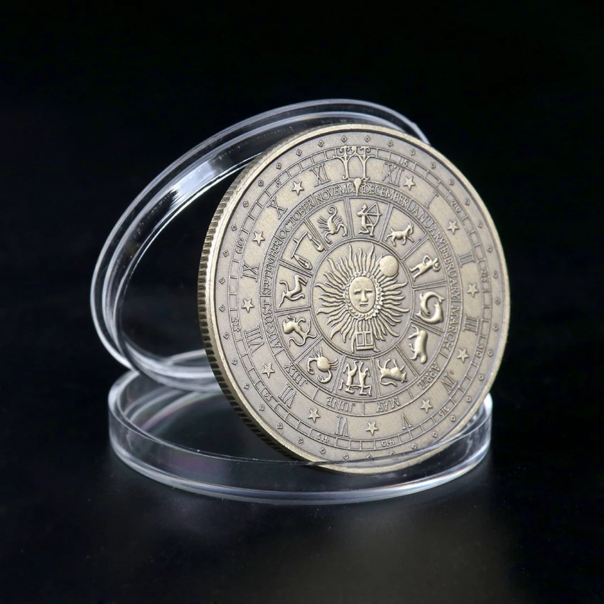 Копия, 1 шт., бронзовая памятная монета в виде тарелков из Европы и Америки, двенадцать созвездий, счастливая любовь, Подарочная монета для же...