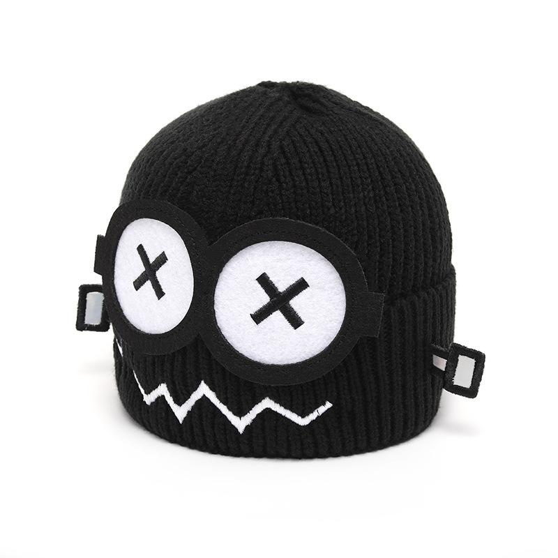 Корейская Забавная Робот Шерстяная Шапка Женская Осень и Зима Теплая Мультяшная Большие Глаза Вязаная Шапка Мужская Универсальная Холодная Шапка чёрный