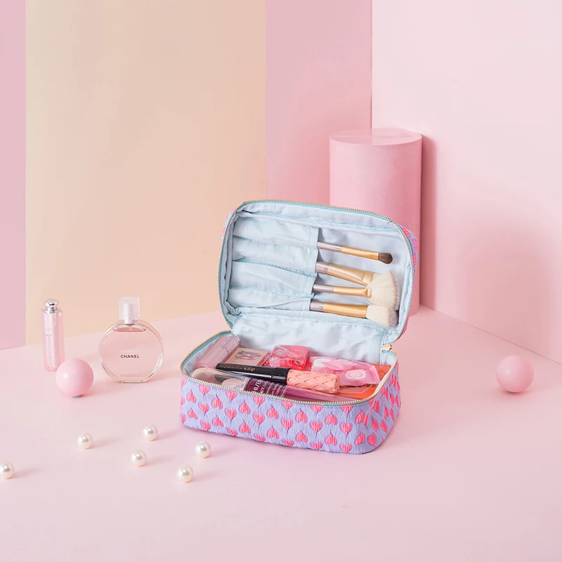 Корейская Милая женская сумка для хранения в форме сердца, розовая дорожная сумка для макияжа, простая ткань, портативный органайзер, Набор ...