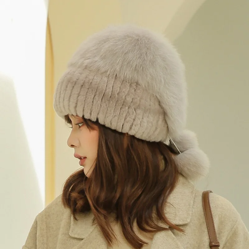 Корейская Милая меховая шапка с защитой ушей, Женская милая женская зимняя модная Роскошная теплая большая эластичная меховая шапка