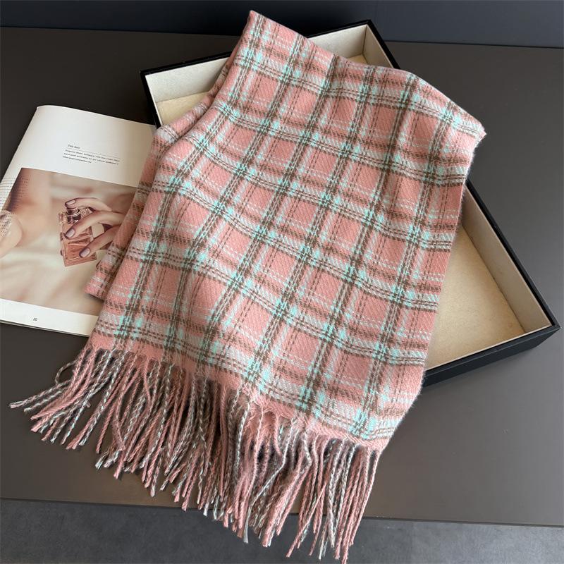 Корейская атмосфера Элегантный клетчатый Осенне-зимний теплый шарф Женская шаль Универсальный для поездок Бахрома Имитация кашемира Шарф 200CmX66cm (with tassel)