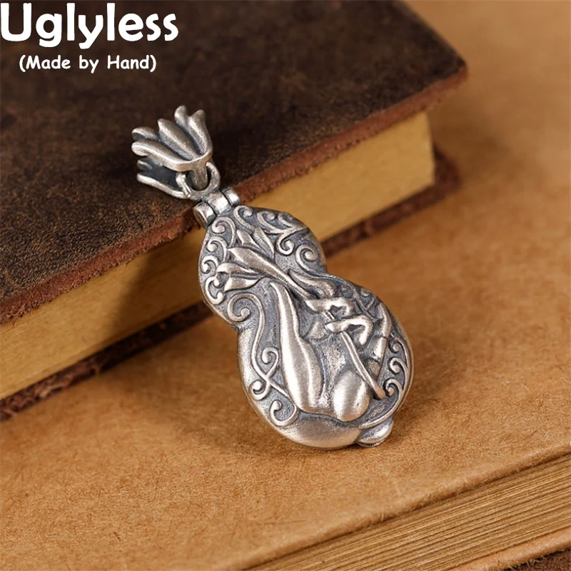 Uglyless Opening Buddha Hand Lotus Jewelry for Women 925 Thai Silver Buddhism Pendants Necklaces NO Chains Religious Gifts Gourd