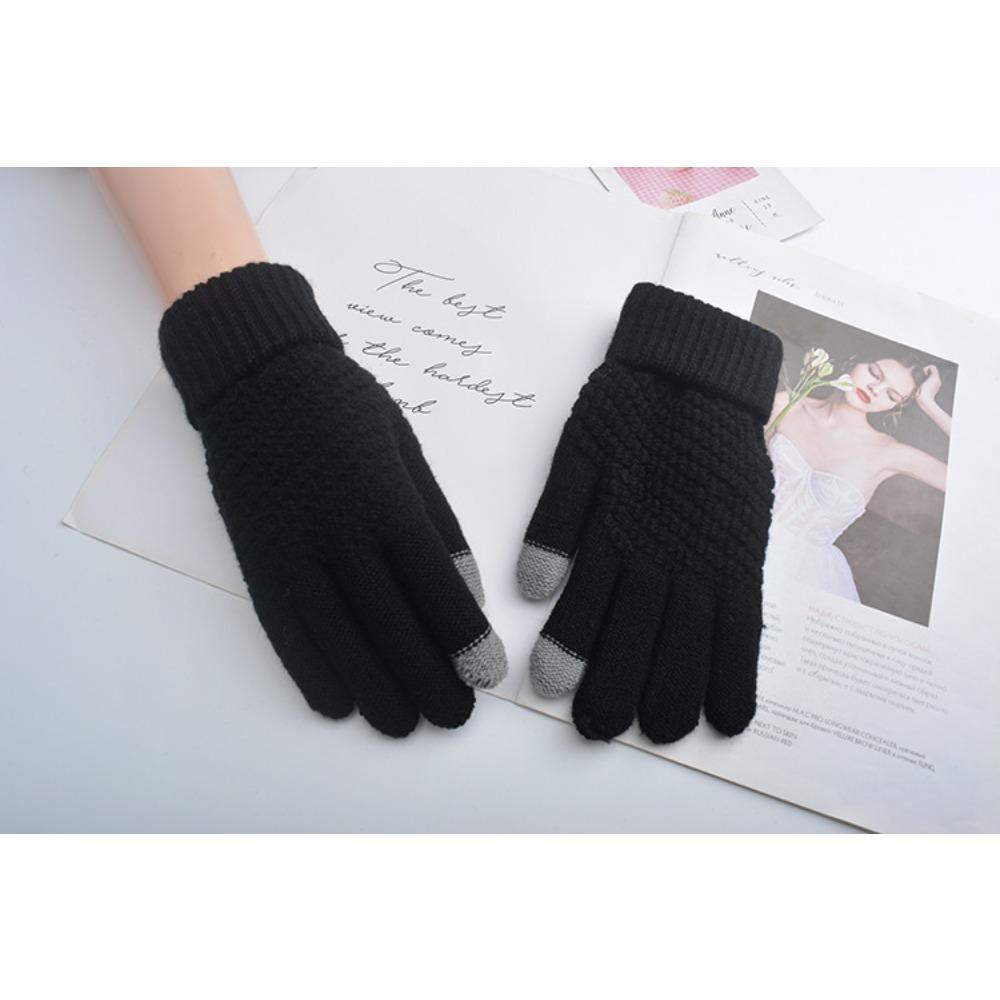 Корейская версия мужских сенсорных перчаток зимние женские ins милые теплые и бархатные зимние студенческие для езды шерстяные с пятью пальцами average size чёрный