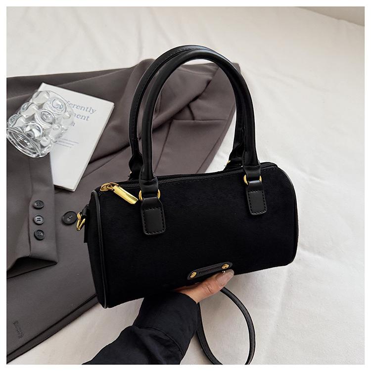 Корейская версия осень и зима новая ретро замша универсальная одноплечевая косая маленькая сумка сумка-подушка Бостонская портативная женская сумка тренд чёрный