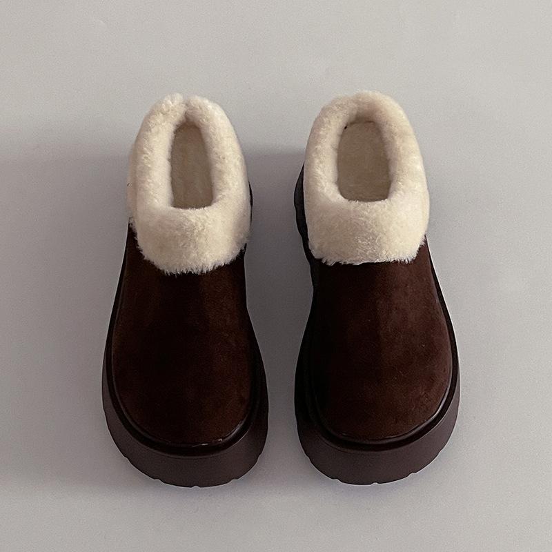 Корейская версия повседневных пушистых тапочек-платформ с отворотом, осенне-зимняя ретро-мода, универсальные женские хлопковые тапочки 40 темно-коричневого