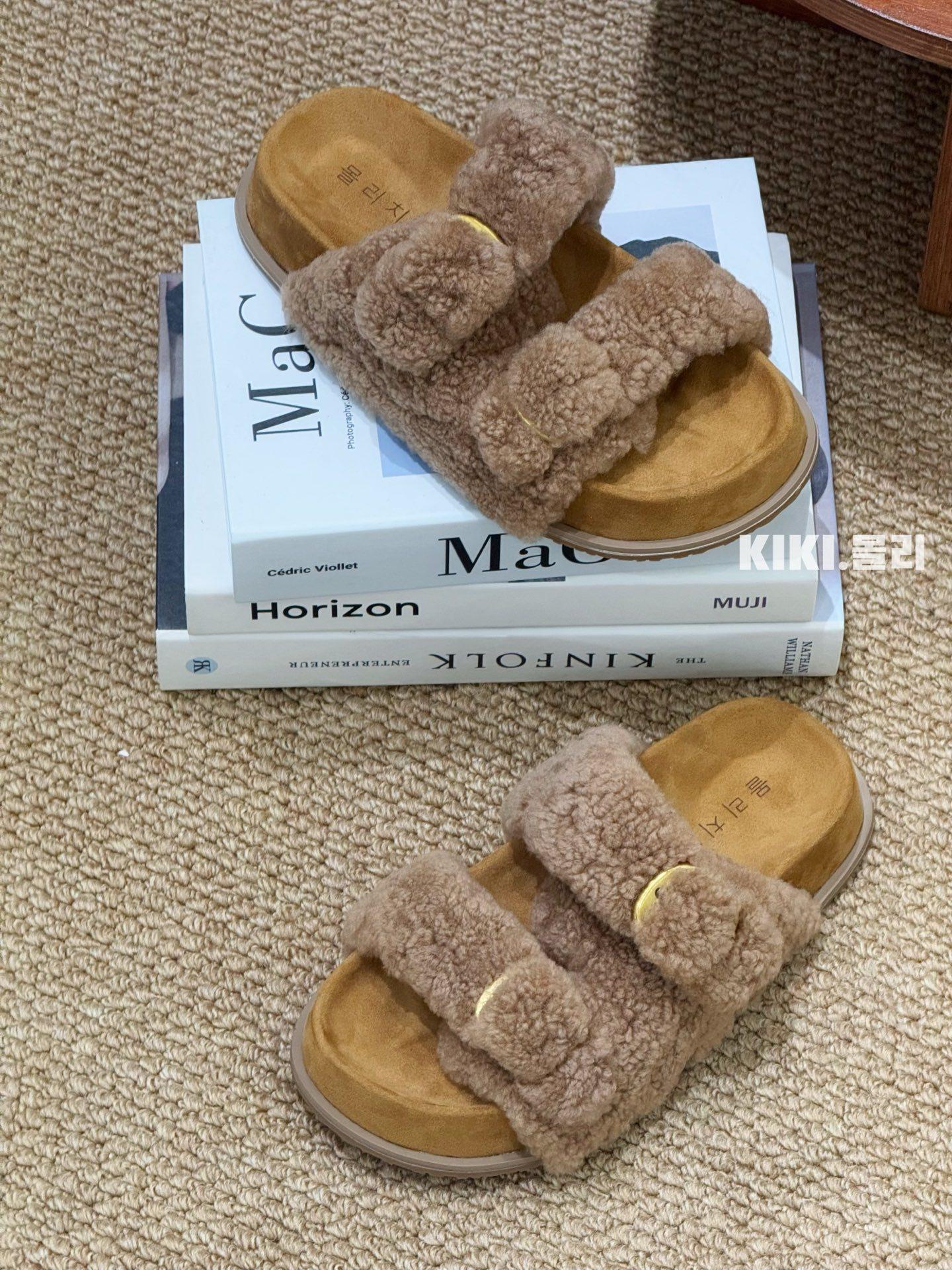 Корейская версия серых пушистых тапочек женские модели на начало осени 2025 года новые толстоподошвенные ворсистые уличные плюшевые тапочки Birkencotton 39