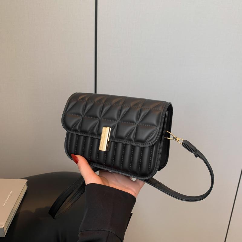Корейская версия фактурной сумки для женщин 2024 года, весна, новая сумка с цепочкой из бриллиантов, нишевая простая сумка через плечо под мышкой, сумка-мессенджер чёрный