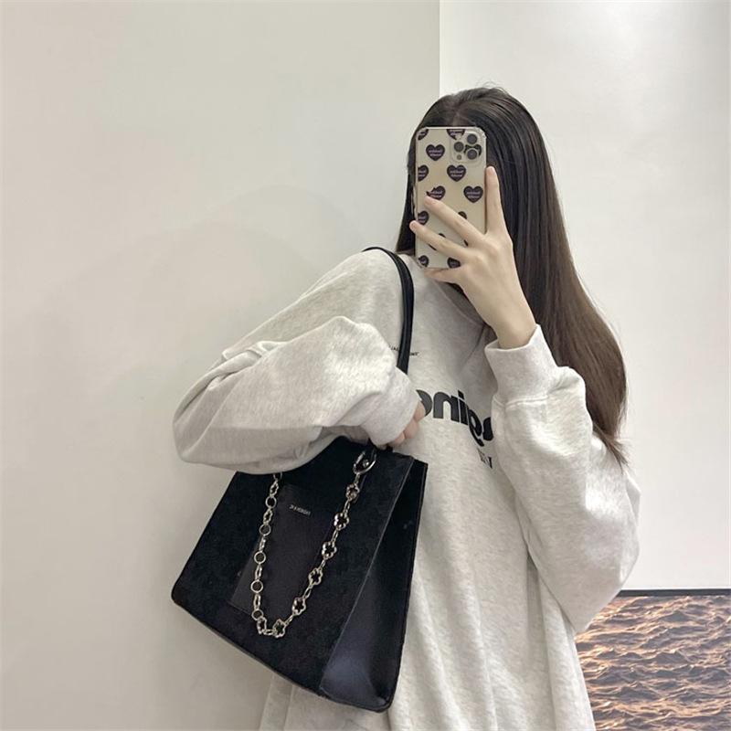 Корейская версия черной сумки с принтом, женская модная повседневная сумка-тоут на цепочке в стиле ретро для поездок на работу, ранняя весна
