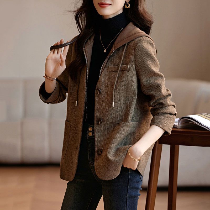 Корейская зимняя мода Приталенное пальто из искусственной шерсти с капюшоном, женский повседневный элегантный стиль 4XL кофейный