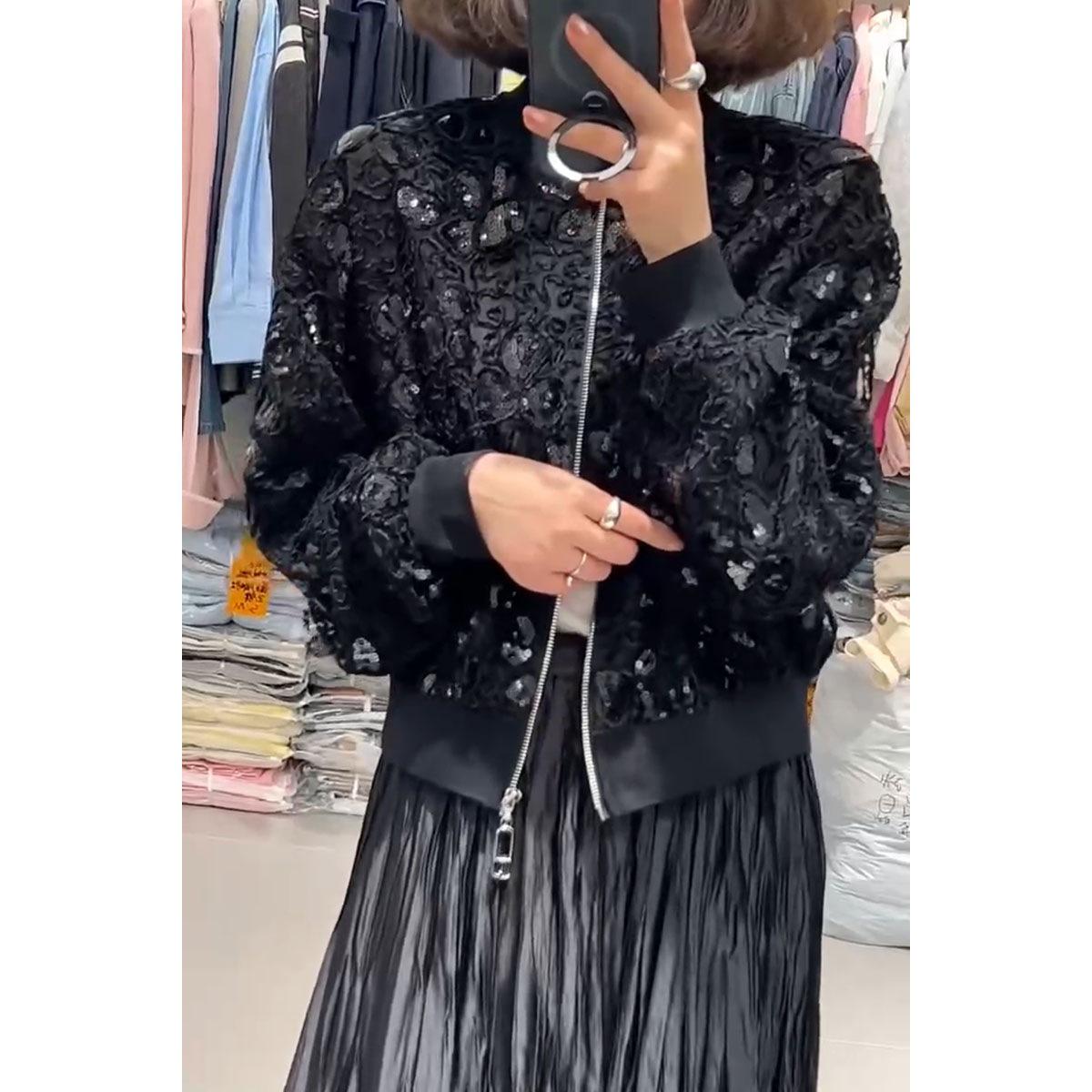 Корейская куртка с вышивкой пайетками класса люкс для женщин - Омолаживающая, Свободного кроя, Стройнящая, Мода Весны 2025 Extra Large чёрный