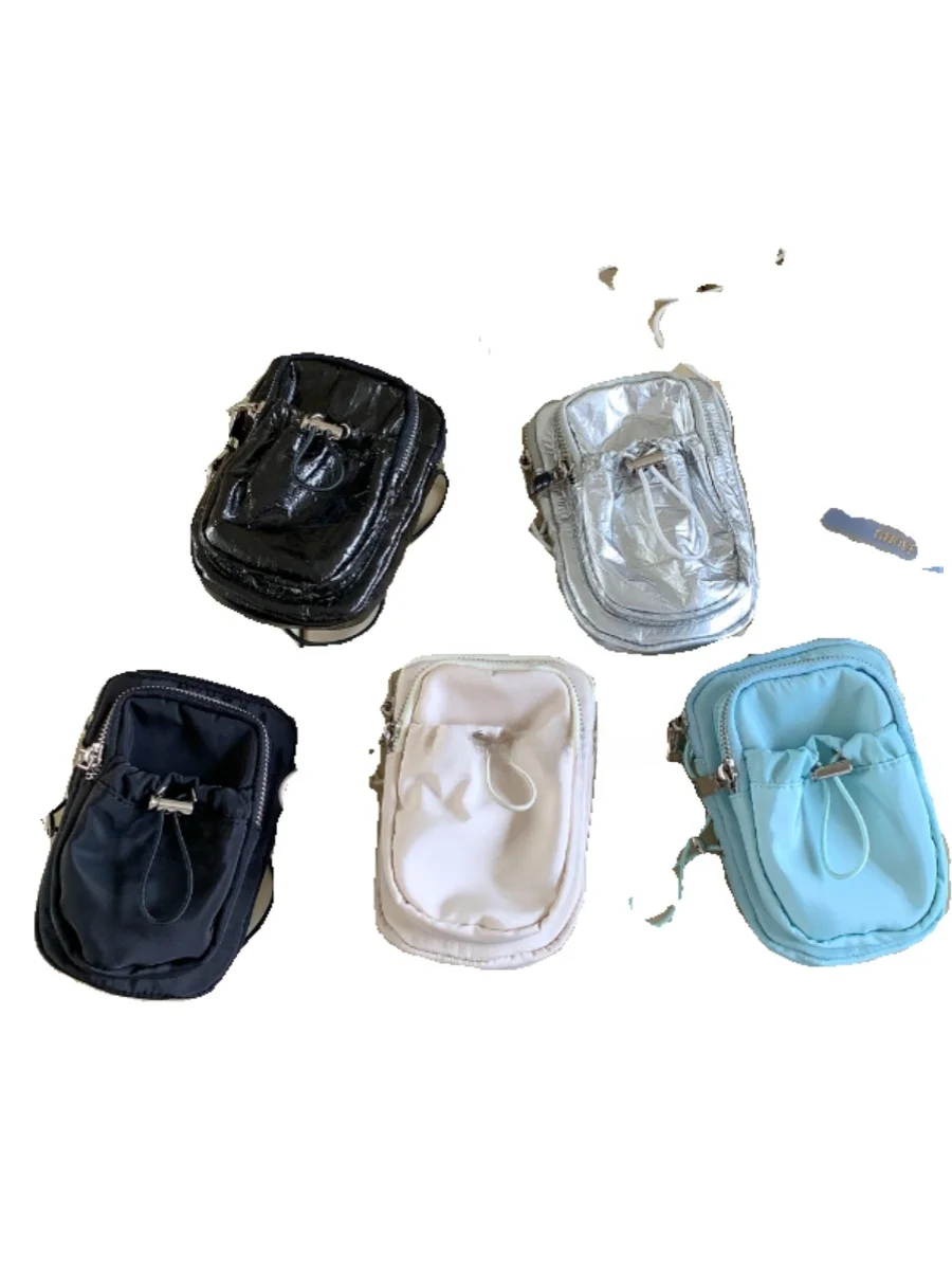 Корейская летняя новая маленькая квадратная сумка, двухслойная сумка через плечо на молнии, эластичный ремень, простая нейлоновая сумка для мобильного телефона