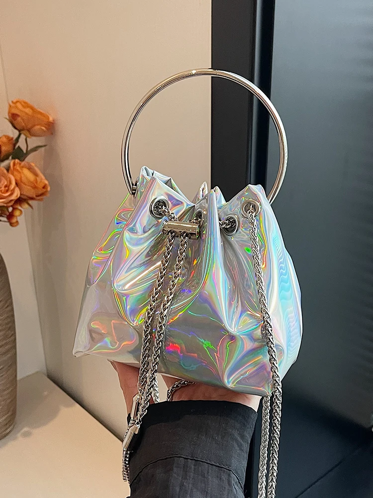Корейская модная сумка-мешок через плечо на цепочке для женщин, летняя новая уникальная дизайнерская ручная сумка через плечо из ПУ кожи с круглыми ручками